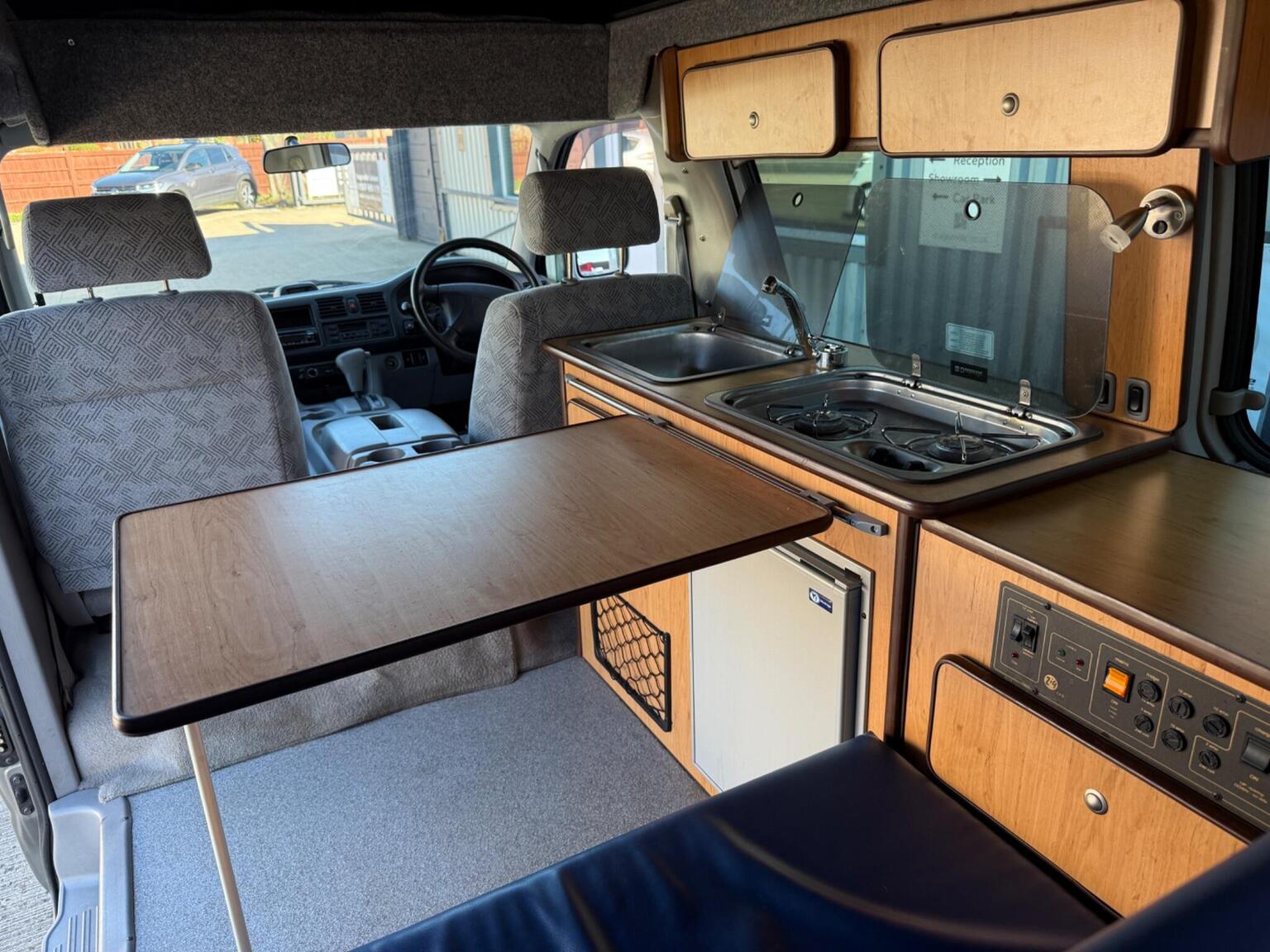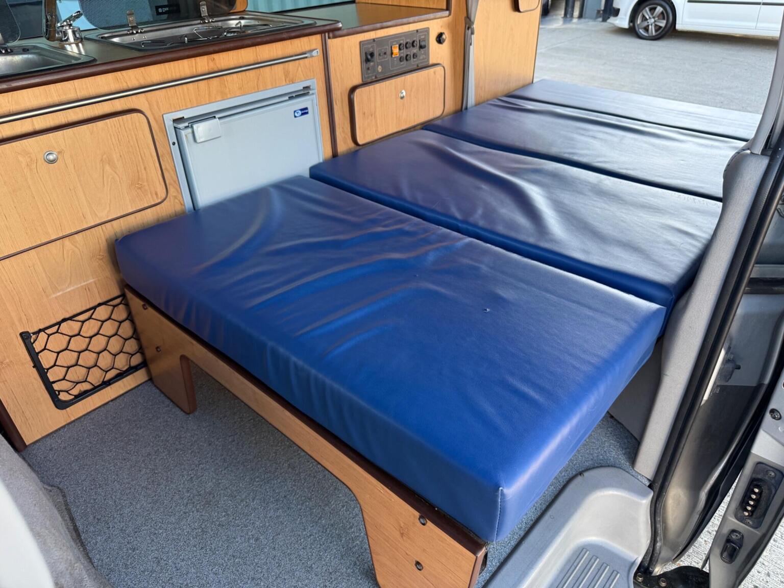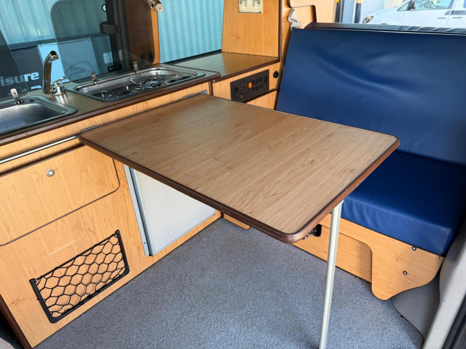 Specification to include: Sink with cold water tap, twin gas hob, privacy glass to rear, electric blinds (rear), 240v hook up, 240v sockets, leisure battery system, 12v lighting, 12v fridge, removable table, air con (front cab), electric windows, central locking, 2 x seatbelts on rear seat (carries 4 people), CD player.