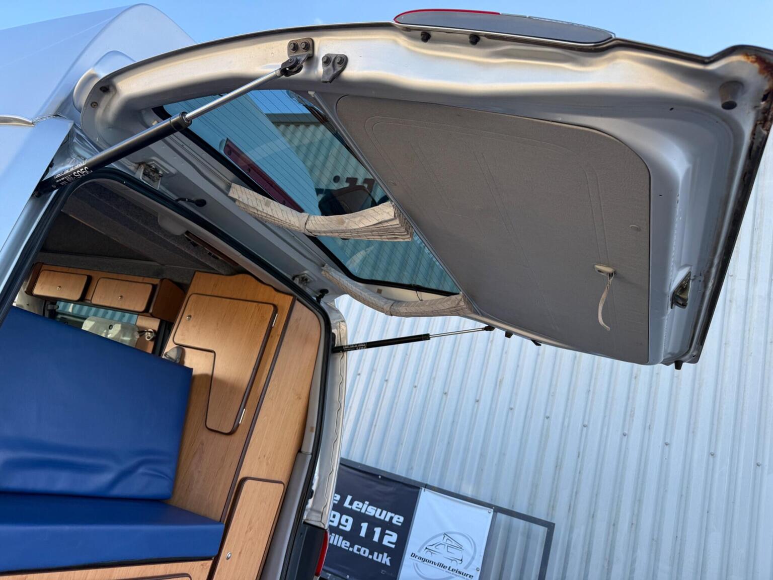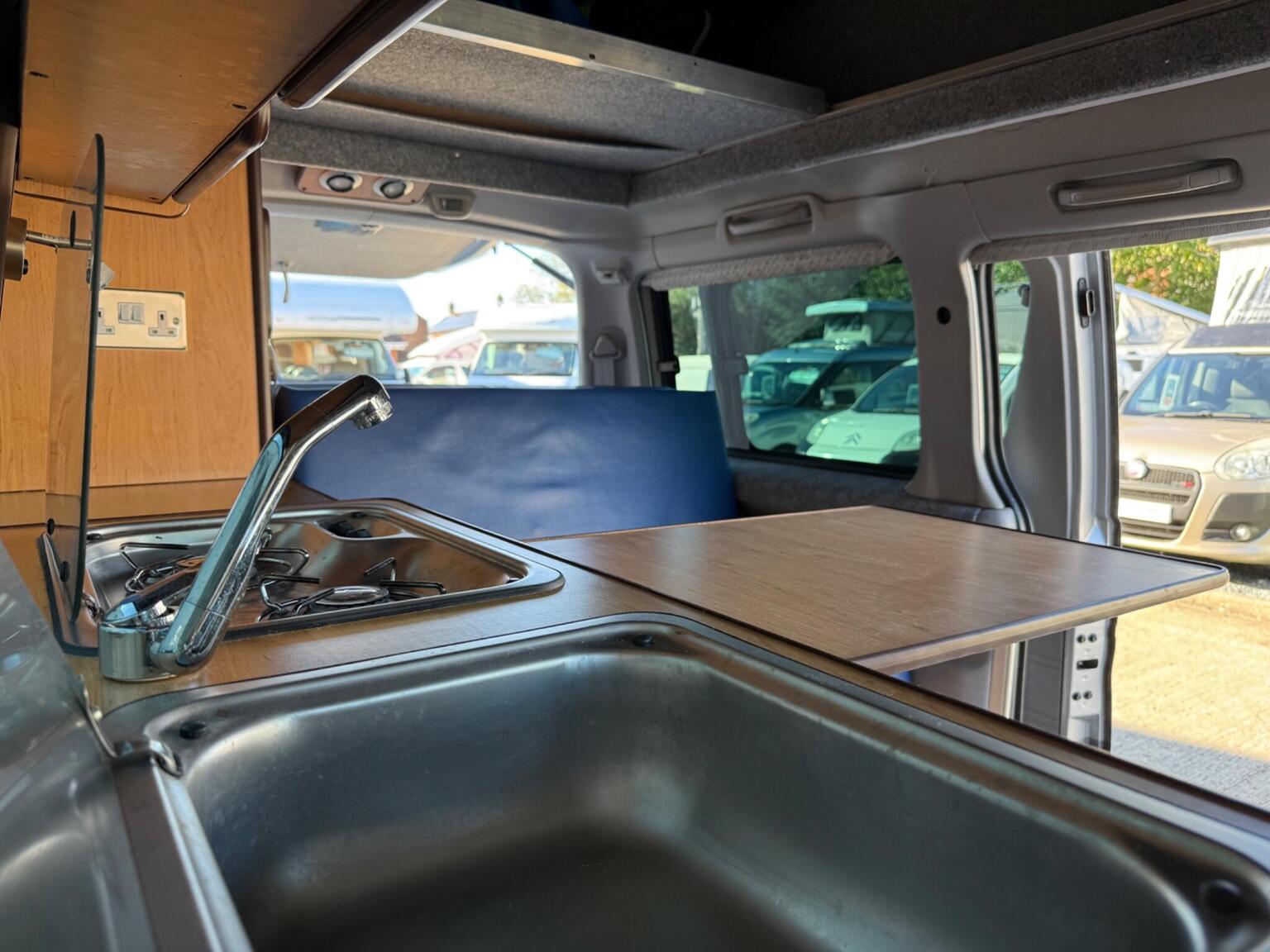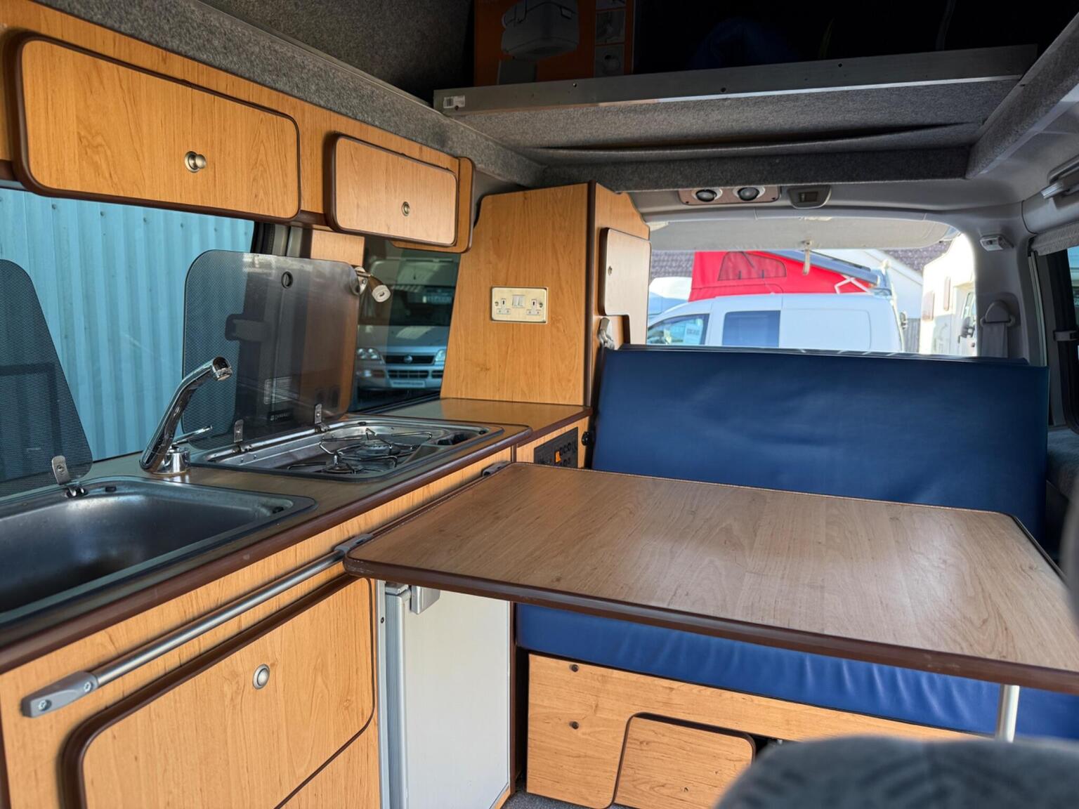 Specification to include: Sink with cold water tap, twin gas hob, privacy glass to rear, electric blinds (rear), 240v hook up, 240v sockets, leisure battery system, 12v lighting, 12v fridge, removable table, air con (front cab), electric windows, central locking, 2 x seatbelts on rear seat (carries 4 people), CD player.