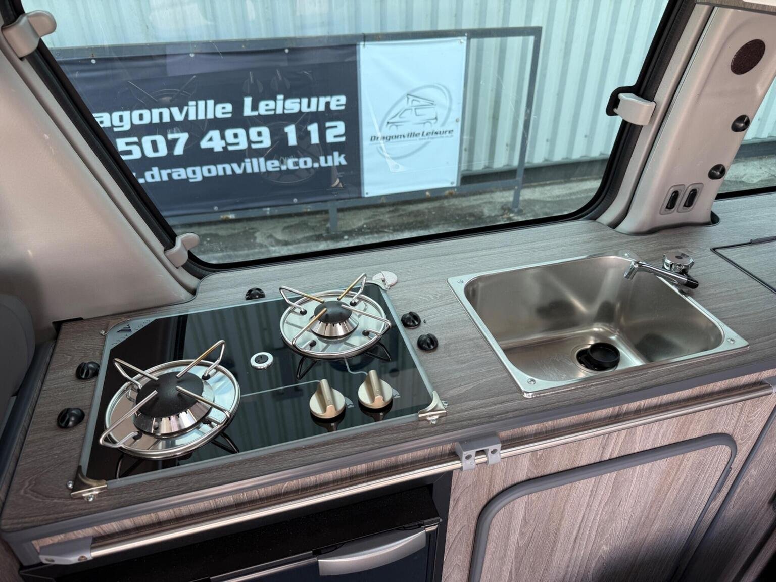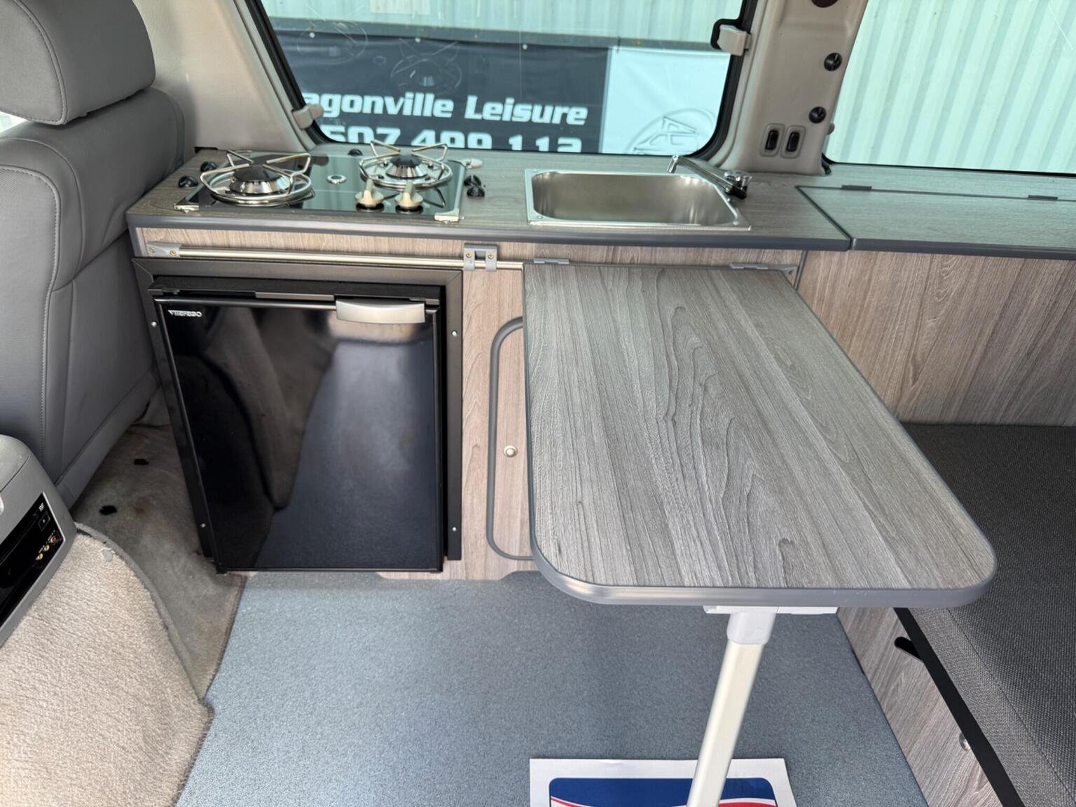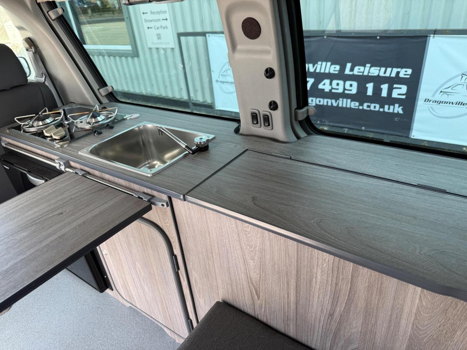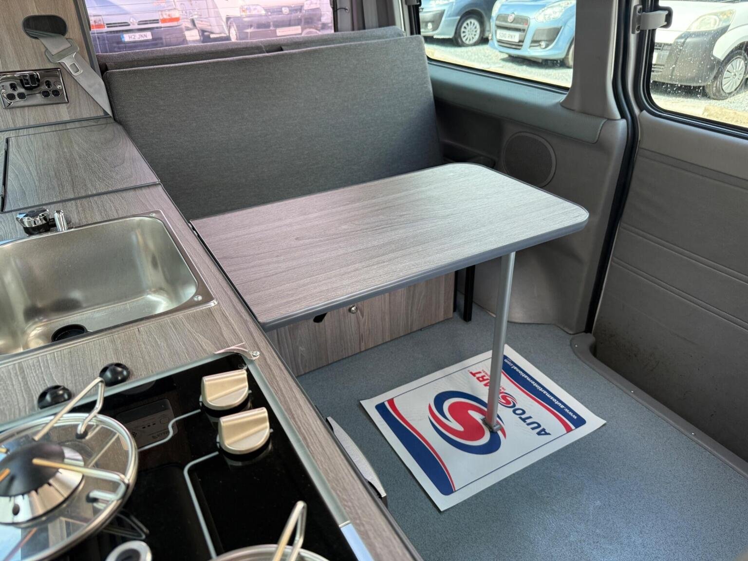 Specification to include: Sink with cold water tap, twin gas hob, privacy glass to rear, electric blinds (rear), 240v hook up, 240v sockets, leisure battery system, 12v lighting, 12v fridge, removable table, air con (front cab), electric windows, central locking, 2 x seatbelts on rear seat (carries 4 people), alloy wheels, remote central locking.