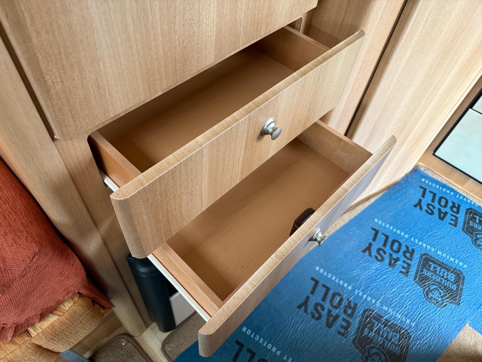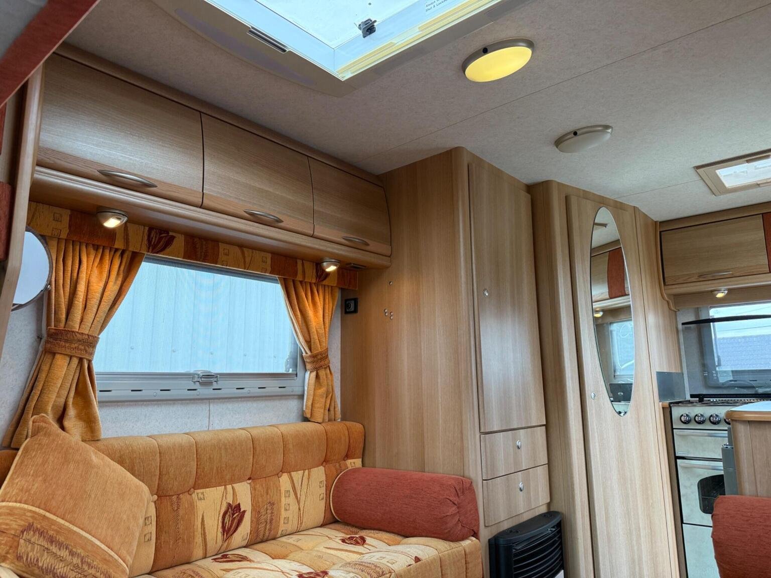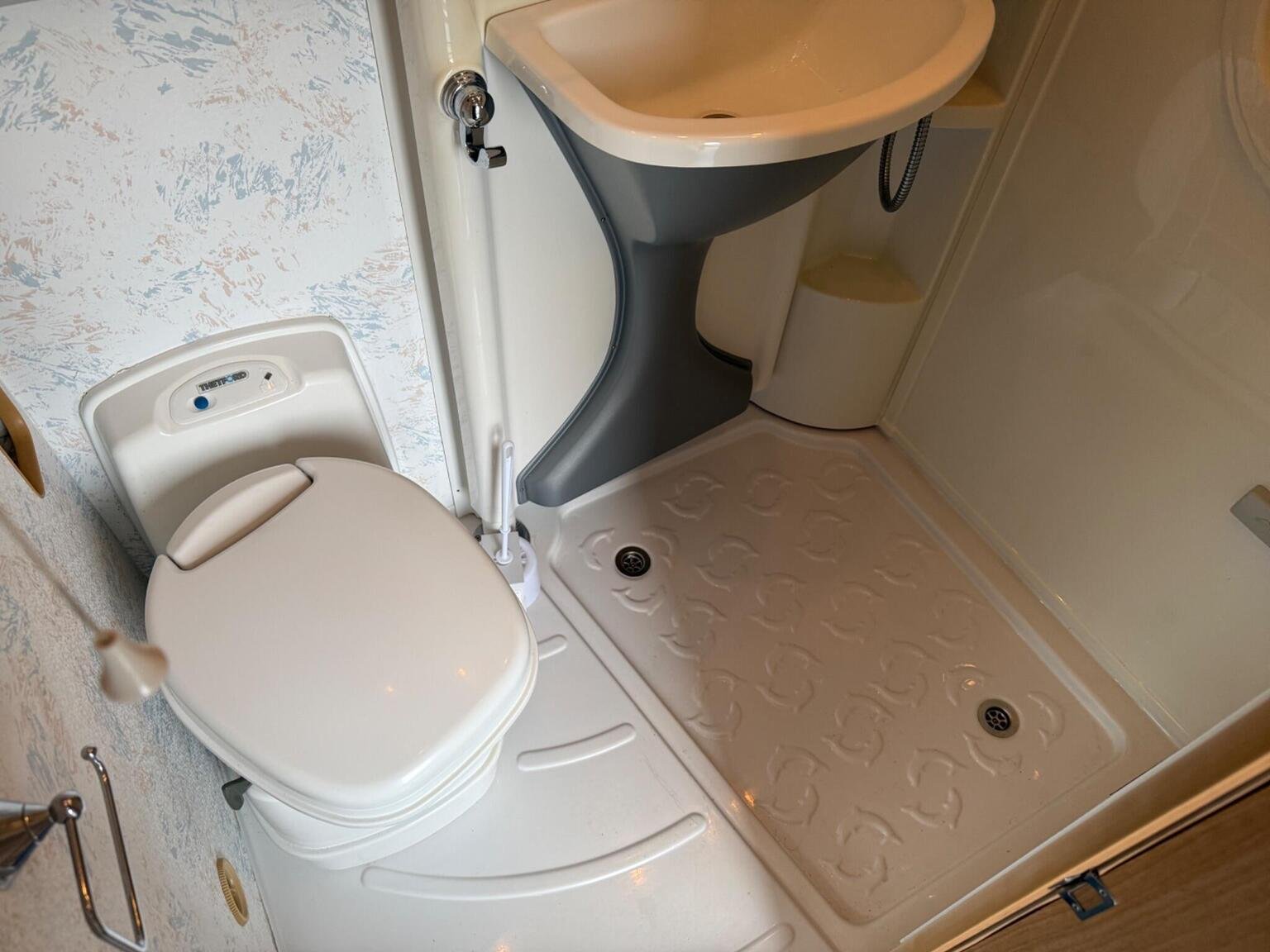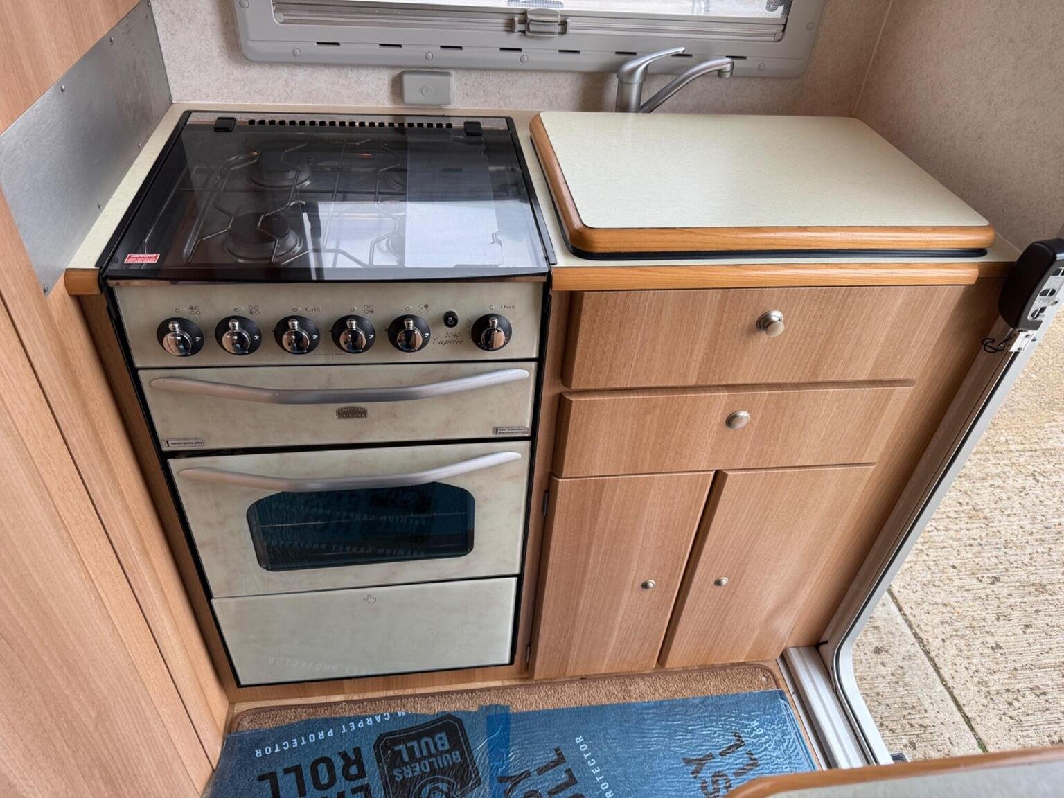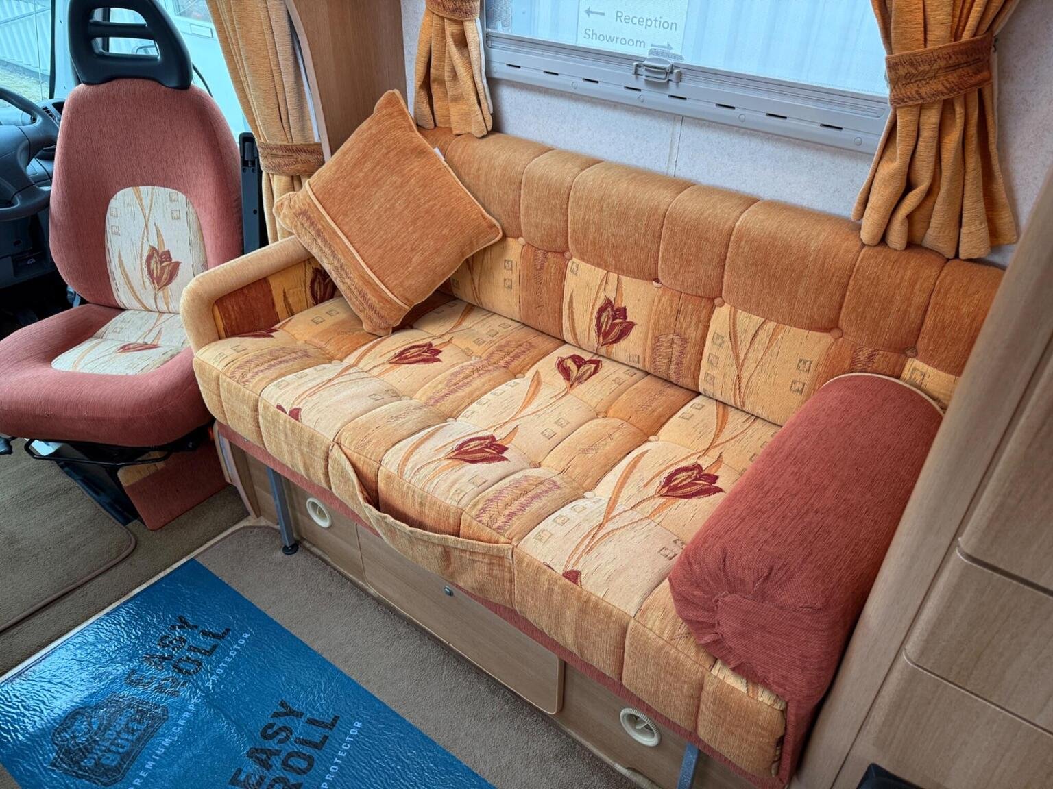 Specification includes: The kitchen has 4 burner gas hob, gas grill, gas oven, sink with hot/cold tap, 3-way Dometic fridge/freezer. Rear washroom with Thetford cassette toilet, shower and sink. Plenty of storage cupboards. 12v control unit, leisure battery, 240v mains hook up, 12v lighting/240v lighting, Fiamma wind out awning, 12v motorised double access step, hot water boiler, blown air heating system, wardrobe, fresh water tank, waste water tank, removable carpets, Heiki roof light, rotating drivers and passenger seats, removable freestanding table, CD player, central locking, electric windows, TV aerial, tow bar with electrics, rear parking sensors, Garmin rear view camera, Garmin Sat Nav (Avtex Tourer Three)