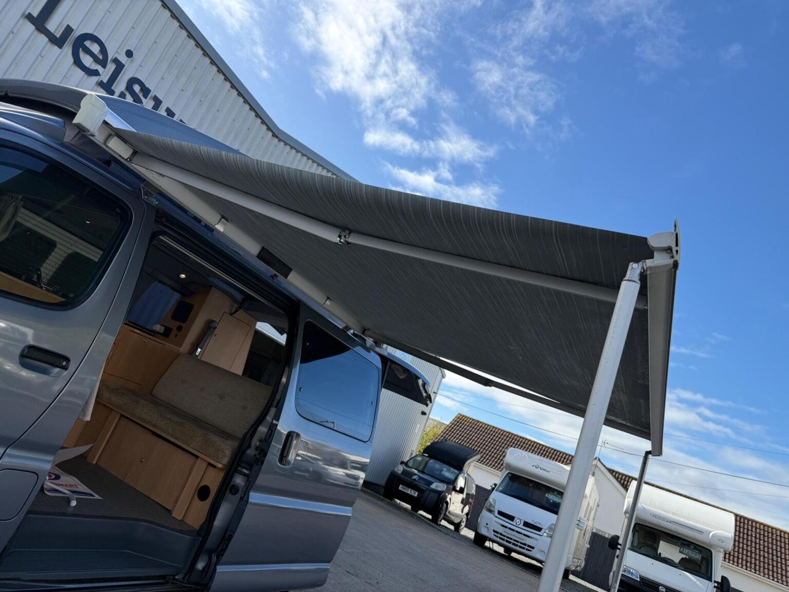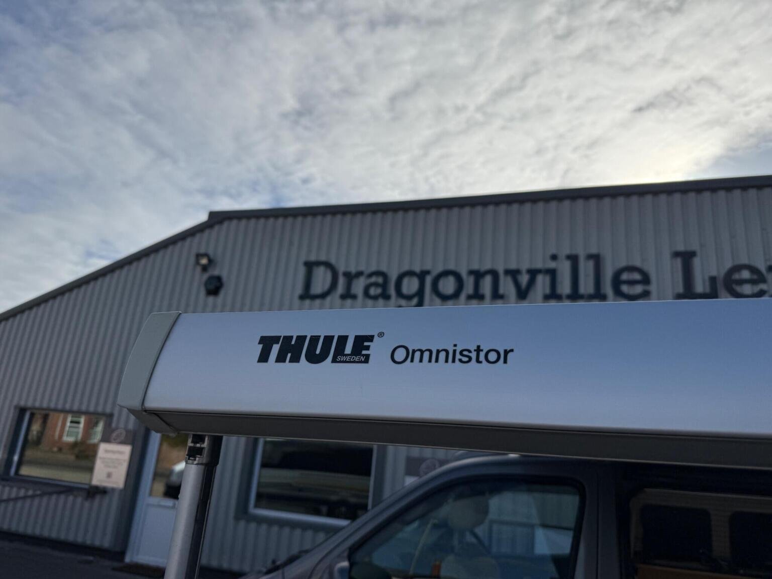 Specification to include: Webasto heating, 12v fridge, sink with cold water tap, twin gas hob, privacy glass to rear, rotating passenger side seat, 240v hook up, window blinds/curtains, leisure battery system, 12v lighting, storage cupboards, Thule Omnistor wind out awning, Fiamma bike rack, upgraded touch screen stereo with bluetooth etc.