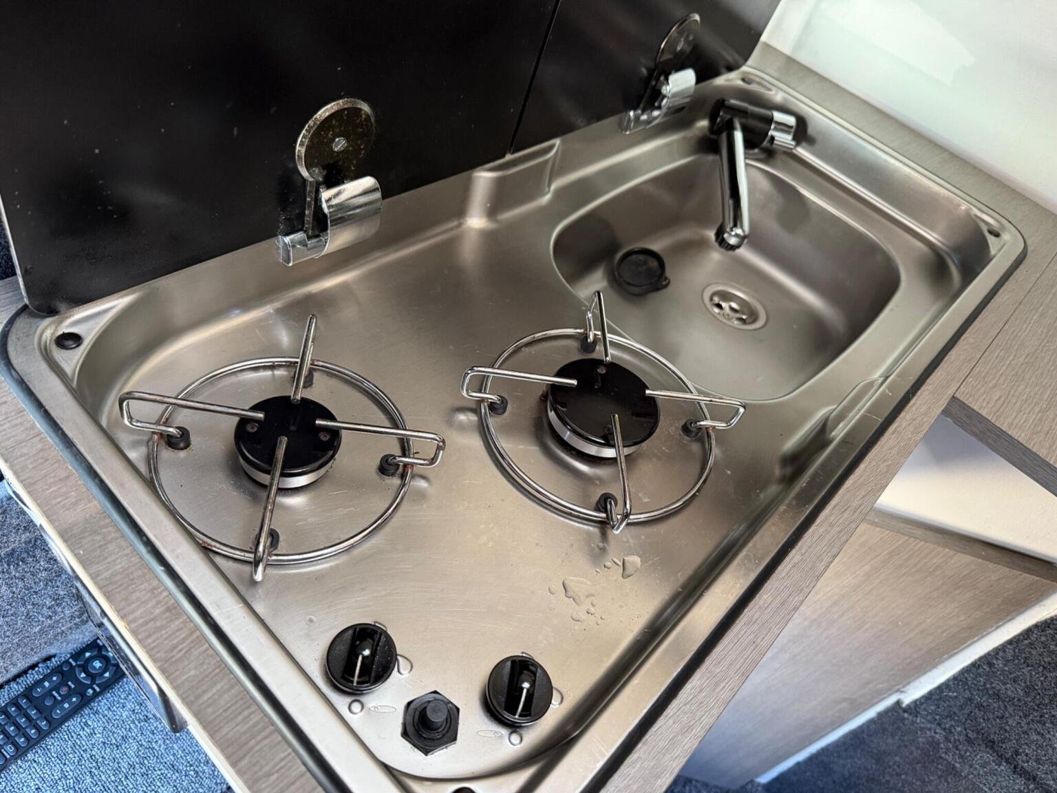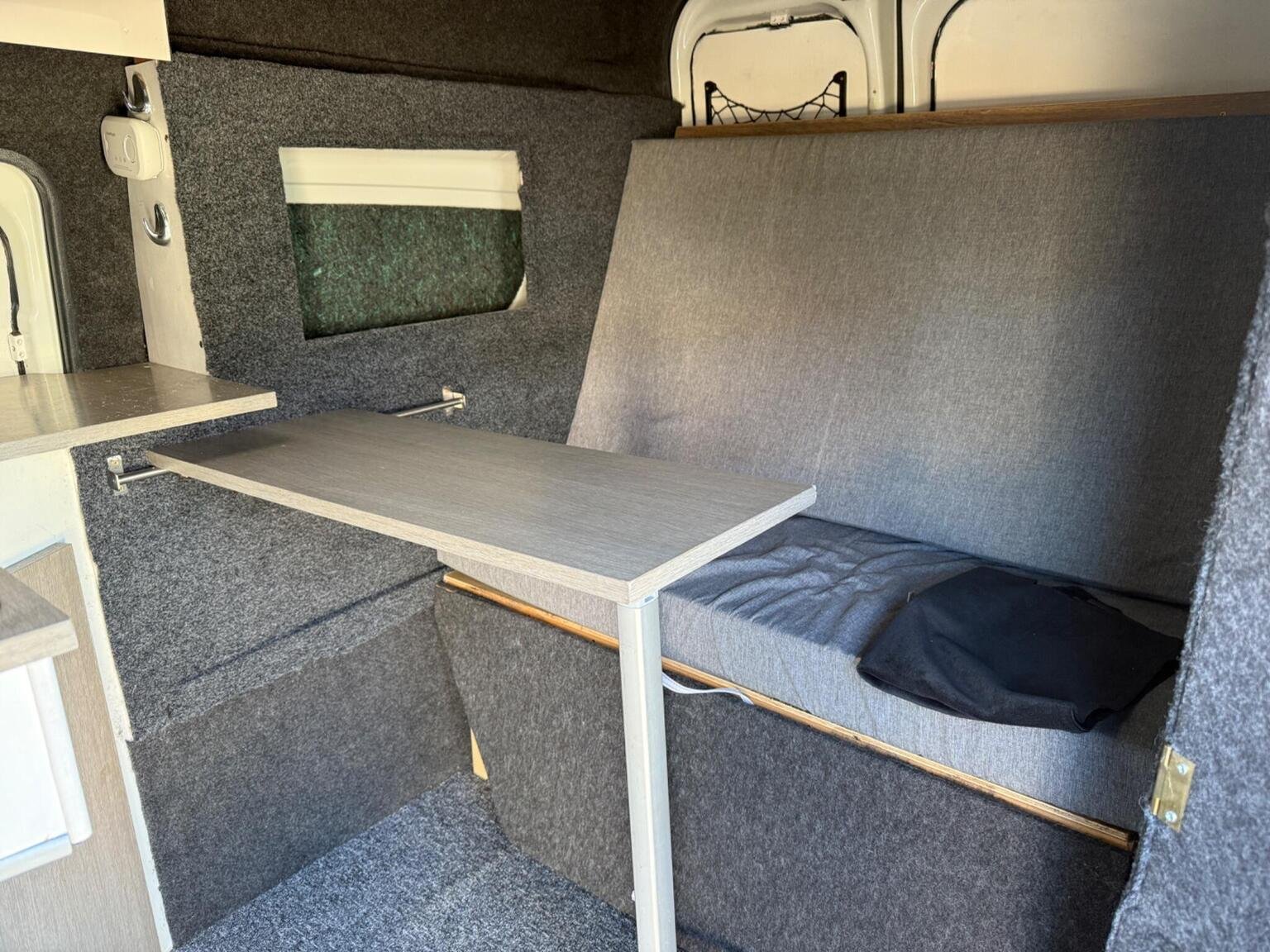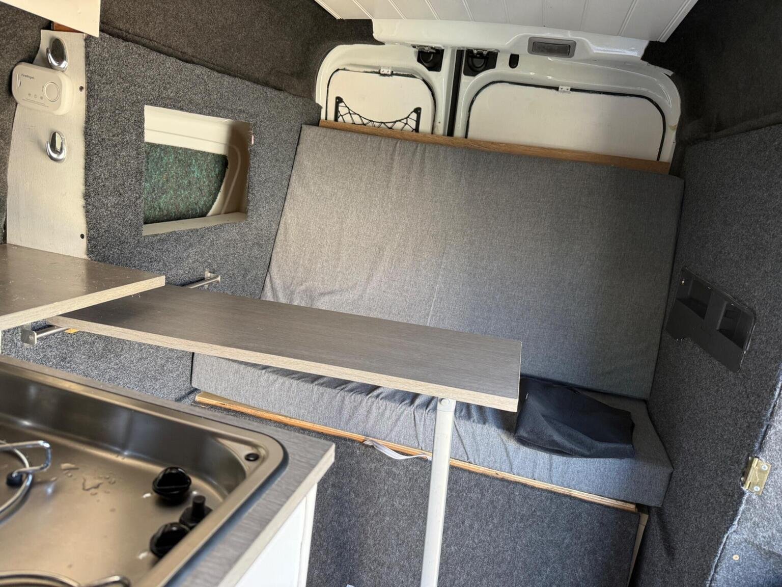 It has a basic conversion, not a pro conversion but still very useable. Has got diesel heating, leisure battery, twin gas hob, sink with cold water, heat seat converts into small bed (cosy double or comfortable single). Cab has got electric windows, central locking, CD player.