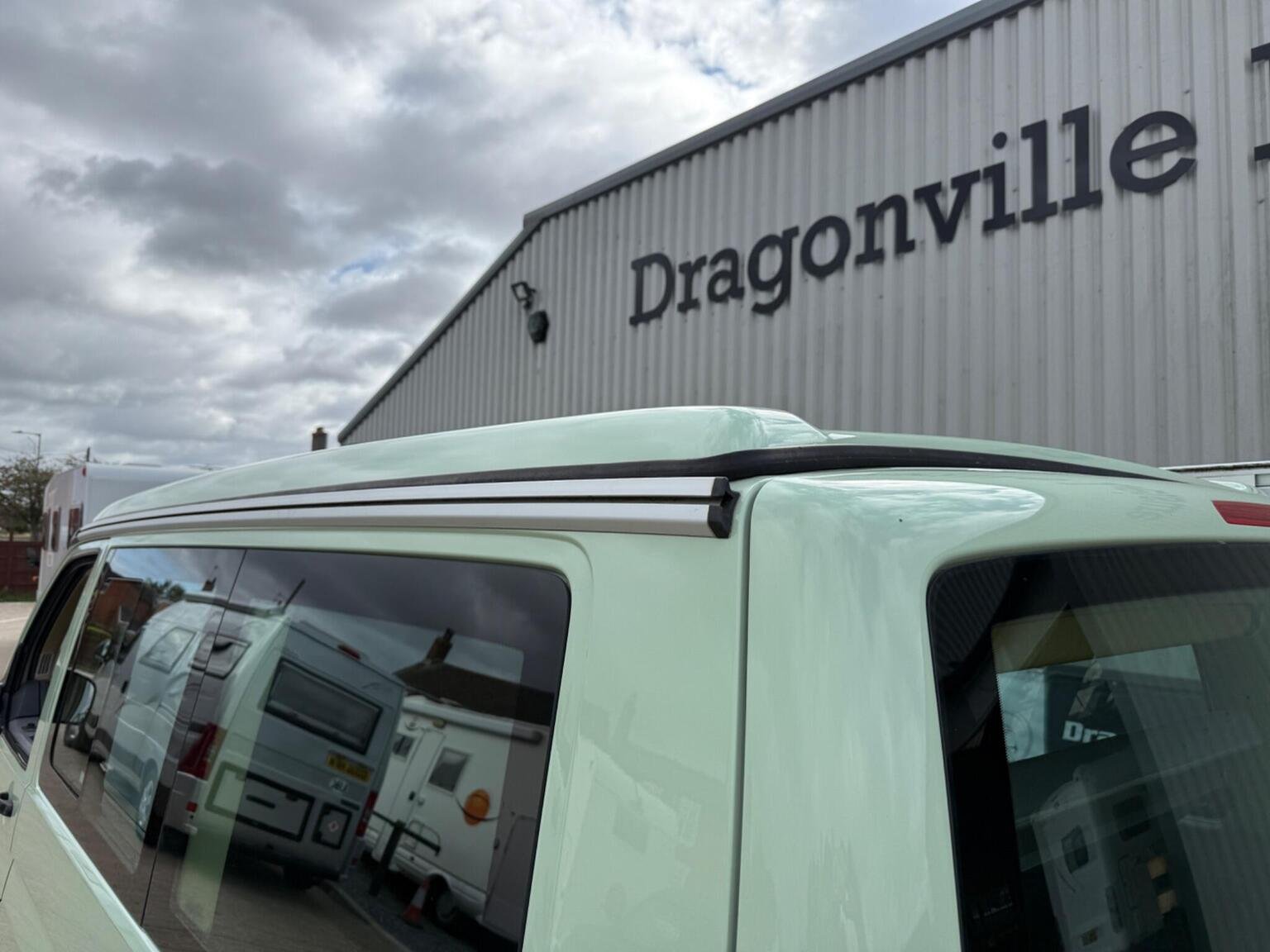 Factory specification (Ocean SE): Full camper conversion: 2-burner hob, sink, 42L fridge. Unfortunately the compressor in the fridge failed when customers were on holiday and needs a compressor. We will endeavour to have this fixed for the new owner. In the meantime there is a very large 12v coolbox included. Two double beds (roof bed with VW mattress topper and fitted sheets, hardly used). Swivel front seats with armrests. Integrated blinds & flyscreens. On-board cupboards and wardrobe with tambour doors. Folding table (sliding door) and 2 VW camping chairs (tailgate). Mains hook-up and auxiliary electrics via onboard CPU. Luxury wood cabinetry and lighting. Extras included: VW California bunk ladder. Sunscreens for the Fiamma awning (front and two sides purchased July 2025. MaxxCamp magnetic sliding-door mosquito net (new). purchased July 2025.